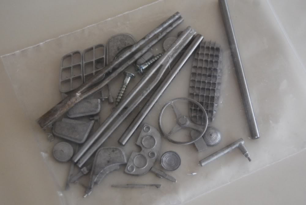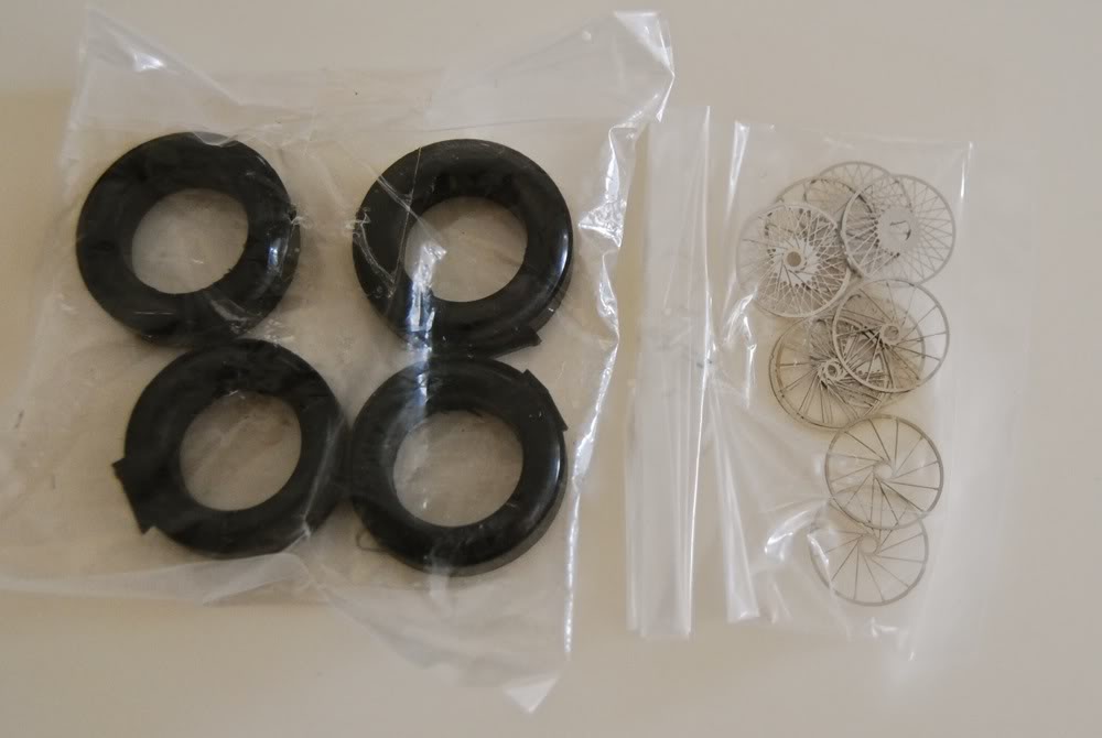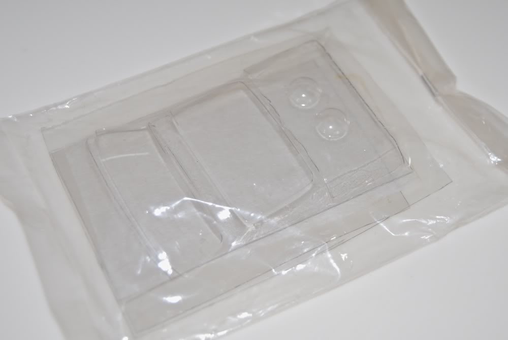 Then there are two bags with headlight covers (yellowed over time) and various wheel-related pieces. There is also a bag with vacuformed windows, headlight covers, and clear acetate sheets for side windows.